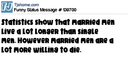 - # 14289 Married men live longer than single men do, but married men are a lot more willing to die...