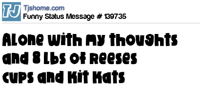 X says alone with my thoughts and 8 lbs of reeses cups and kit kats
