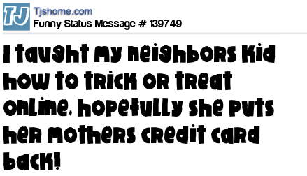 X says I taught my neighbors kid how to trick or treat online, hopefully she puts her mothers credit card back!