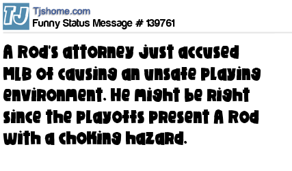 X says A Rod's attorney just accused MLB of causing an unsafe playing environment. He might be right since the playoffs present A Rod with a choking hazard.