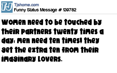X Women need to be touched by their partners twenty times a day; men need ten times! they get the extra ten from their imaginary lovers.