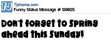 - # 175370 "Spring Ahead" this weekend for Daylight Saving Time proves there is a much quicker way than Facebook to lose an hour in your life....