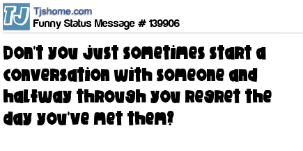 X says Don't you just sometimes start a conversation with someone and halfway through you regret the day you've met them?