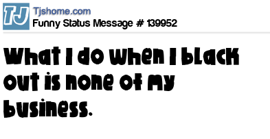 - # 146903 What I do when I'm black out drunk is none of my business.
