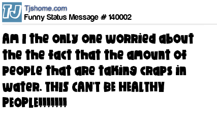 X says am I the only one worried about the the fact that the amount of people that are taking craps in water. THIS CAN'T BE HEALTHY PEOPLE!!!!!!!