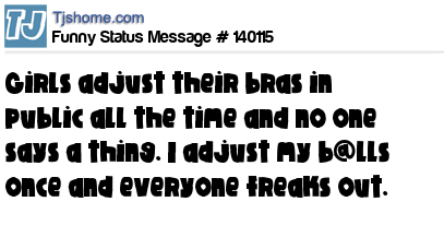 X says Girls adjust their bras in public all the time and no one says a thing. I adjust my b@lls once and everyone freaks out.