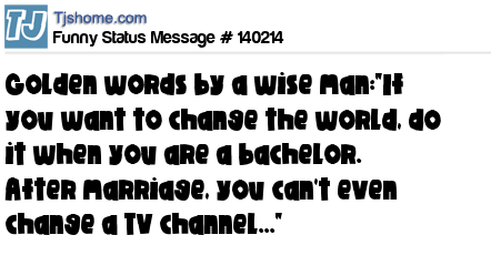 - # 152823 If you want to change the world, do it when you are a bachelor. After marriage, you Cnt even change Channel of Tv