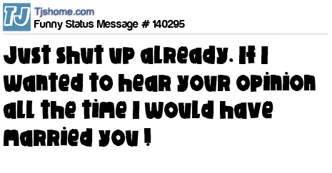 X says Just shut up already. If I wanted to hear your opinion all the time I would have married you !