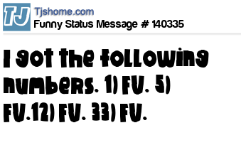 X I got the following numbers. 1) FU. 5) FU.12) FU. 33) FU.
