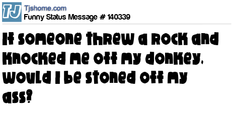 - # 19648 Random thought of the day: If someone threw a rock and knocked you off your donkey, would you be stoned off your ass?