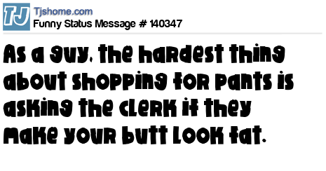 X As a guy, the hardest thing about shopping for pants is asking the clerk if they make your butt look fat.