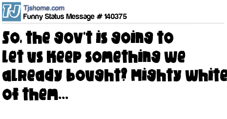 X So, the gov't is going to let us keep something we already bought? Mighty white of them...