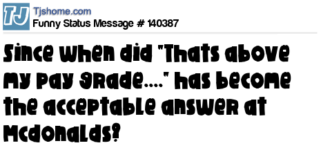 X since when did "Thats above my pay grade...." has become the acceptable answer at Mcdonalds?