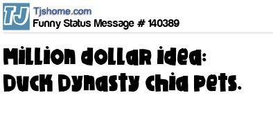X says Million dollar idea: Duck Dynasty chia pets.