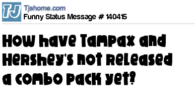 - # 155286 I think Tampax and Hershey's should get together and offer a super pack....