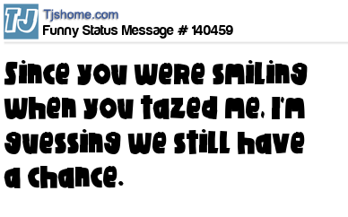 X says Since you were smiling when you tazed me, I'm guessing we still have a chance.