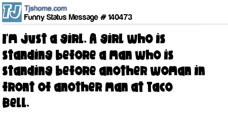 X says I'm just a girl. A girl who is standing before a man who is standing before another woman in front of another man at Taco Bell.