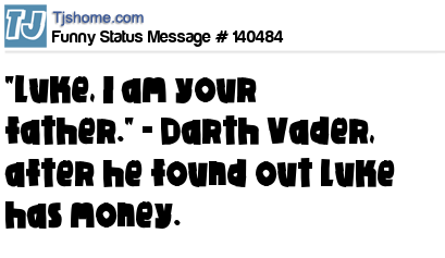 - # 72425 "Luke, I am your Father...and your Uncle"- Redneck Darth Vader