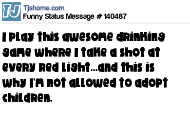 X says I play this awesome drinking game where I take a shot at every red light...and this is why I'm not allowed to adopt children.
