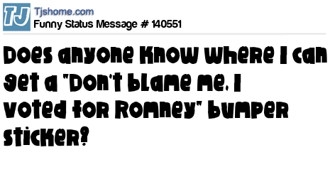 X says Does anyone know where I can get a "Don't blame me, I voted for Romney" bumper sticker?