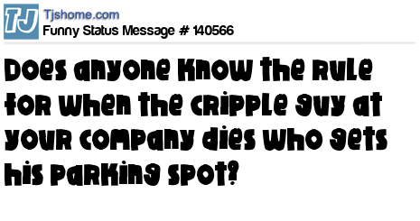 X says Does anyone know the rule for when the cripple guy at your company dies who gets his parking spot?