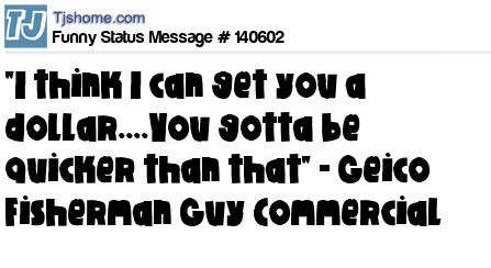 X says "I think I can get you a dollar....You gotta be quicker than that" - Geico Fisherman Guy Commercial