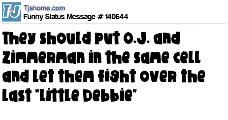 X says They should put O.J. and Zimmerman in the same cell and let them fight over the last "Little Debbie"
