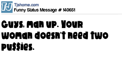 X Guys, man up. Your woman doesn't need two pu$$ies.