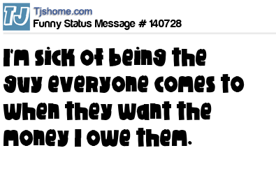 X says I'm sick of being the guy everyone comes to when they want the money I owe them.