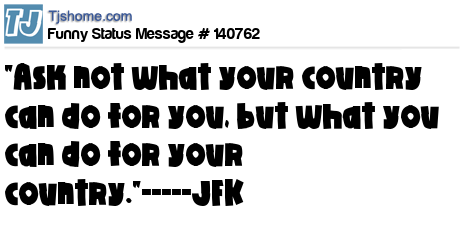 - # 140772 "Ask not what your country can do for you, but what you can do for your country."~JFK "How's it going, Sunshine?" ~ Barack Obama campaigning in Sunrise, Florida