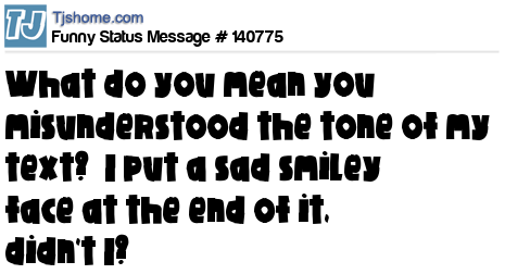 X says What do you mean you misunderstood the tone of my text? I put a sad smiley face at the end of it, didn't I?