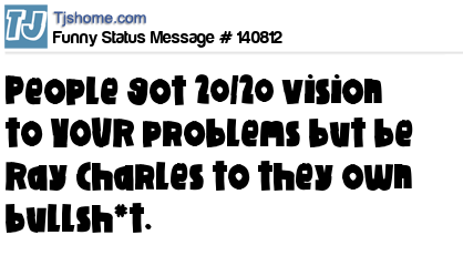 X says People got 20/20 vision to YOUR problems but be Ray Charles to they own bullsh*t.