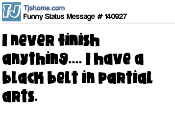 X I never finish anything.... I have a black belt in partial arts.