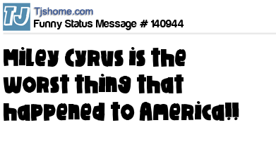 - # 136145 Ok so America is attacking Syria for the chemical gas thing but who's attacking America for the Miley Cyrus thing?