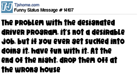 X says The problem with the designated driver program, it's not a desirable job, but if you ever get sucked into doing it, have fun with it. At the end of the night, drop them off at the wrong house