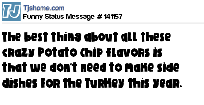 X The best thing about all these crazy Potato Chip flavors is that we don't need to make side dishes for the Turkey this year.