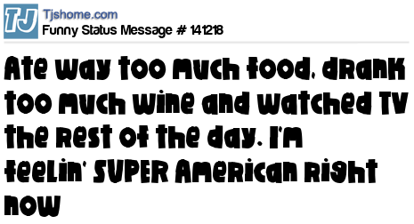 X says Ate way too much food, drank too much wine and watched TV the rest of the day. I'm feelin' SUPER American right now