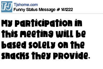 X says My participation in this meeting will be based solely on the snacks they provide.
