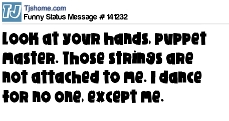 X says Look at your hands, puppet master. Those strings are not attached to me. I dance for no one, except me.