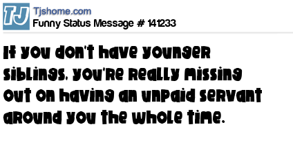 X says If you don't have younger siblings, you're really missing out on having an unpaid servant around you the whole time.