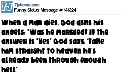 X says When a man dies, God asks his angels; "Was he married? If the answer is "Yes" God says, 'Take him straight to heaven he's already been through enough hell"