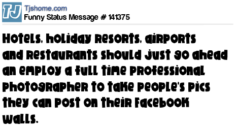 X says Hotels, holiday resorts, airports and restaurants should just go ahead an employ a full time professional photographer to take people's pics they can post on their Facebook walls.