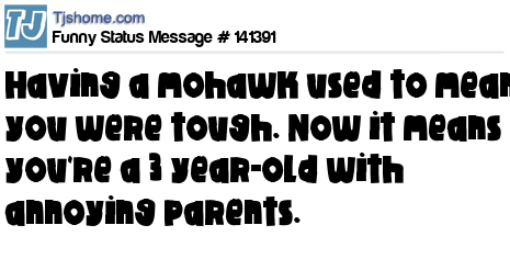 X says Having a mohawk used to mean you were tough. Now it means you're a 3 year-old with annoying parents.