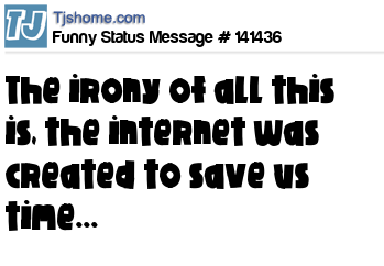 - # 162722 The irony of all this is, the internet was created to save us timeā¦