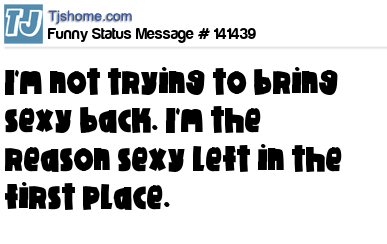 - # 138889 I'm not bringing sexy back. I'm the reason sexy left in the first place.