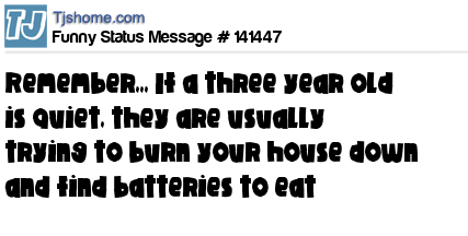 X Remember,,, If a three year old is quiet, they are usually trying to burn your house down and find batteries to eat