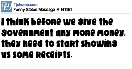 X I think before we give the government any more money, they need to start showing us some receipts.