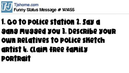 X says 1. Go to police station 2. Say a gang mugged you 3. Describe your own relatives to police sketch artist 4. Claim free family portrait