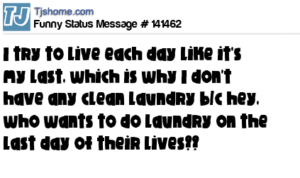 X says I try to live each day like it's my last, which is why I don't have any clean laundry b/c hey, who wants to do laundry on the last day of their lives??