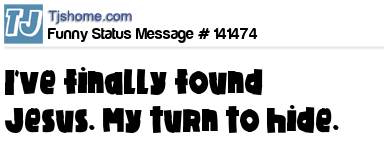 X says I've finally found Jesus. My turn to hide.